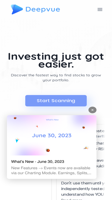 87%Deepvue Reviews What traders are saying About Deepvue Experience the Deepvue difference You’ll always have the most accurate information you need to make
