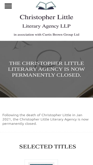 83%Following the death of Christopher Little in Jan 2021, the Christopher Little Literary Agency is now permanently closed.