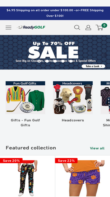 79%Get the best deals on golf equipment and apparel at ReadyGOLF. Shop now for discounts on clubs, bags, shoes, and more. Hit the links in style!