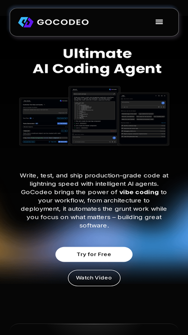 44%The ultimate AI coding agent for engineers. Build, Ask, and Test with real-time AI assistance powered by SOTA LLMs. GoCodeo automates production-ready code generation, enhances productivity, and seamlessly integrates with your IDE. It is the future of software development.