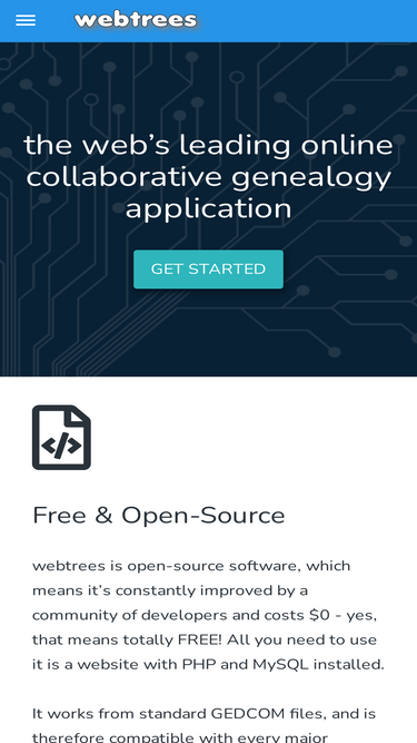webtrees is a web application that allows you to publish your genealogy online, collaborate with family members and take control of your data.