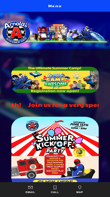 100%arnold's family fun center is your source for go karts, games, rides, bowling, music, food, and fun. come check out the area's largest arcade and newest bowling facility.