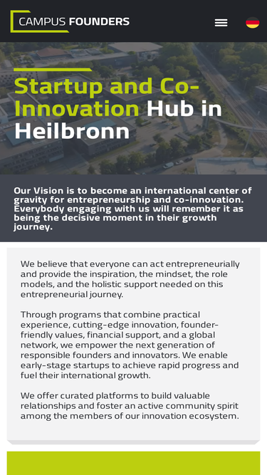 92%Venture Studio FAQs Venture Studio Apply Why Us Why Heilbronn FAQs Venture Studio Resources About Wie viel Geld kann ich von Campus Founders erhalten? Wir investieren bis zu 100.000 in ein Wandeldarlehen, typischerweise in 2 Tranchen. Könnt ihr ein Co-Investor für das Startup BW Pre-Seed Programm sein? Ja, wir arbeiten gerne mit unseren Partner*innen zusammen, […]