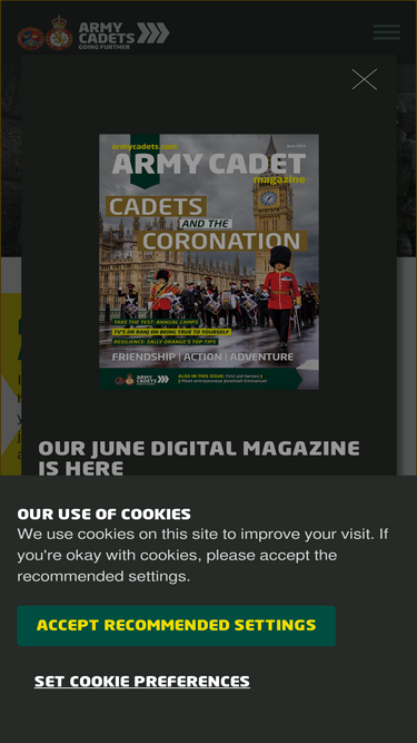 58%Information about the Army Cadet Force including news and events, recruitment, volunteering, and contact information.