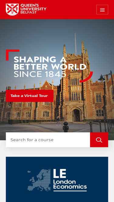 100%A prestigious Russell Group UK university, Queen's University Belfast is a leader in innovation and impact, and is ranked 200 in the world (Times Higher Education World University Rankings 2021)