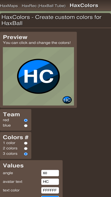 76%a tool for creating '/colors' commands for customizing haxball colors.