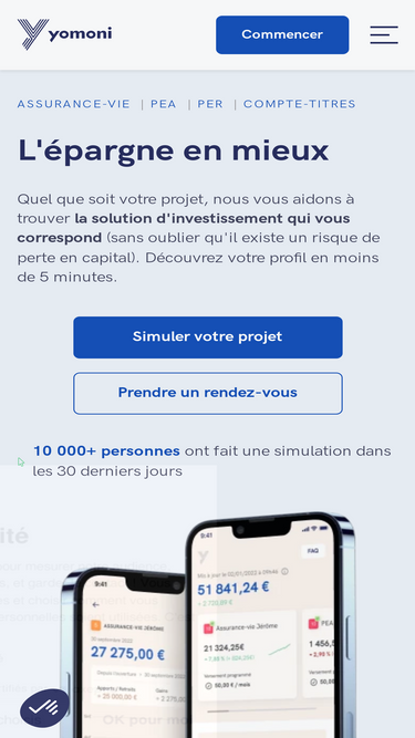 85%Yomoni met votre épargne en pilotage automatique. Vous répondez à nos questions, nous vous concevons un portefeuille personnalisé, et nous le gérons pour vous.