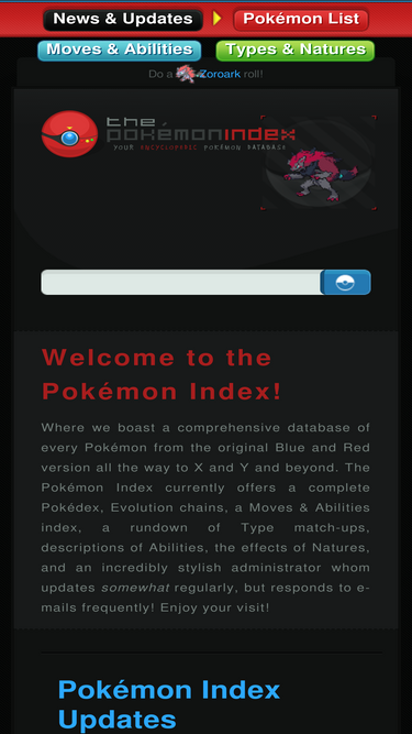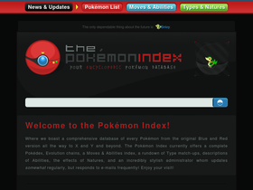 67%where we boast a comprehensive database of every pokemon from the original blue and red version all the way to x and y and beyond! the pokemon index currently offers a complete pokedex, evolution chains, a moves & abilities index, a rundown of type match-ups, descriptions of abilities, the effects of natures, and new content and updates semi-regularly! enjoy your visit!