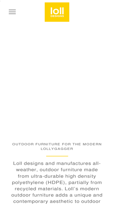 84%Loll designs and manufactures durable, all-weather outdoor furniture made from HDPE plastic – partially from recycled single-use milk jugs. Loll’s modern outdoor furniture adds a unique and contemporary aesthetic to outdoor spaces.