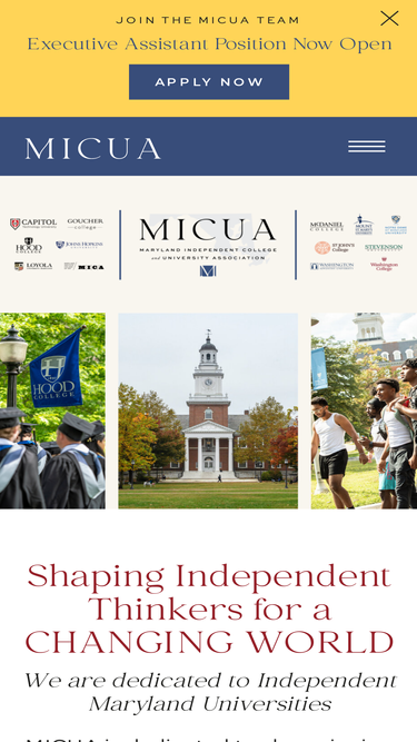 96%the maryland independent college and university association (micua) is a member-driven organization devoted to promoting independent higher education and the public benefit that it provides to meet educational, economic, and cultural needs.