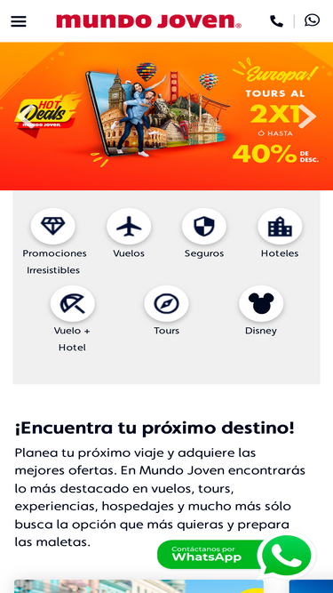 72%Planea tu próximo viaje y adquiere las mejores ofertas. En Mundo Joven encontrarás lo más destacado en vuelos, tours, experiencias, hospedajes y mucho más ...