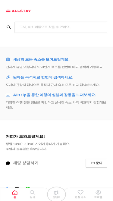 78%안녕하세요? 세상의 모든 머무름 - Allstay에 방문하신것을 환영합니다. Stories에서는 올스테이의 여행 이야기를 읽어 보실 수 있습니다. Hotels에서는 예약 가능한 전세계의 다양한 호텔과 숙소 상품을 찾아 보실 수 있습니다.