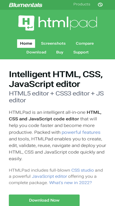 88%htmlpad is a modern, lightweight html editor and a powerful css and javascript editor that will help you code faster. features include powerful text editor with syntax highlighting, code intelligence, ftp/sftp connectivity, code validation and formatting.