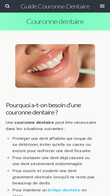 guidecouronnedentaire.com vous informe sur les poses d'une couronne dentaire que ce soit en france ou à l'étranger, les avantages et inconvénients des