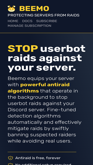 85%Explore the options for adding Beemo to your Discord server.