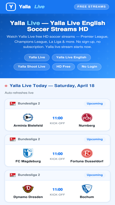 59%Yalla Live is the #1 free live sports streaming platform. Watch Yalla Live English football, soccer, Premier League, Champions League, La Liga, boxing, F1,...