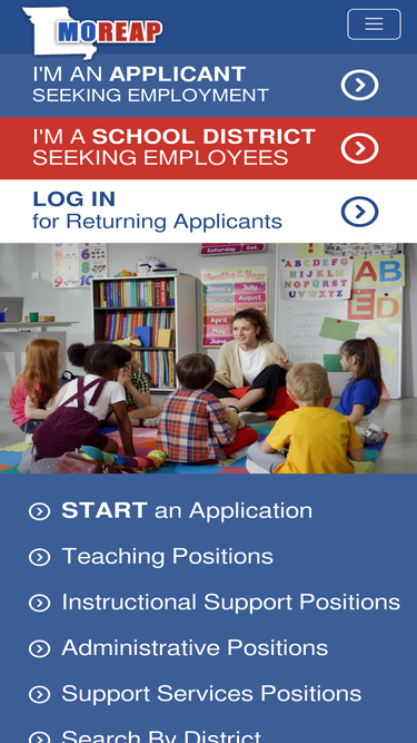 75%where missouri school teachers find jobs. teachers and administrators can securely submit their resumes to human resources professionals throughout missouri. teachers and educational administrators fill out one application and update their application throughout their career. this is a free service to all applicants.