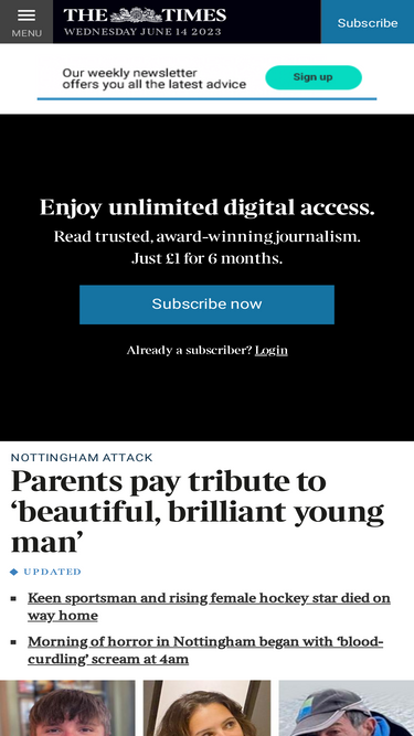 83%The latest breaking UK, US, world, business and sport news from The Times and The Sunday Times. Go beyond today's headlines with in-depth analysis and comment.