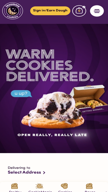 77%Warm. Delicious. Delivered. Insomnia Cookies specializes in delivering warm, delicious cookies right to your door - daily until 3 AM.
