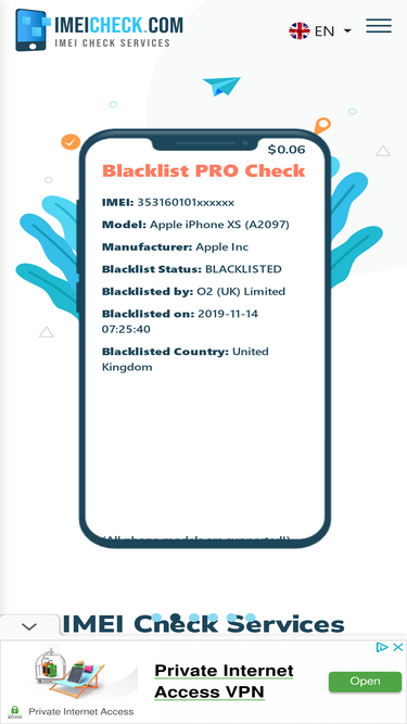 85%We beat any market prices for all IMEI Check Services. Apple Full Info, Samsung full Info, iCloud Check, Blacklist Check, SimLock and much more Online Check services