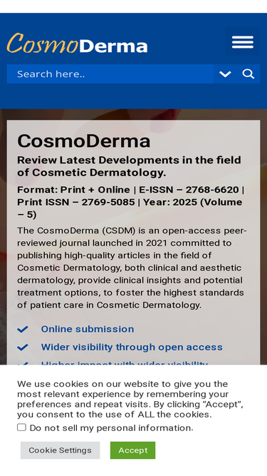 76%The Cosmoderma (CSDM) is an open-access peer-reviewed journal committed to publishing high-quality articles in the field of Cosmetology, Dermatology, Skin and Allergy.