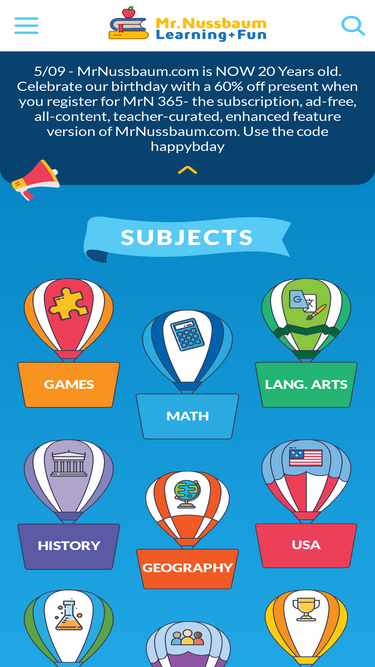 92%mrnussbaum.com provides thousands of free interactive and printable educational games and activities for students in grades k-8. serving millions every year since 2003.