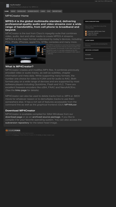mp4creator, a free multiplexer/demultiplexer tool for the mpeg-4 format