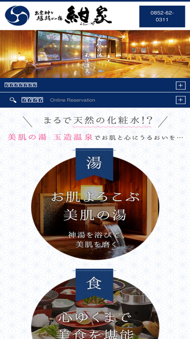 87%玉造温泉・出雲神々縁結びの宿「紺家」(島根県・松江・出雲)の公式サイト。日本最古の温泉「神の湯」と山陰・日本海・宍道湖の旬の素材を楽しめる温泉旅館。