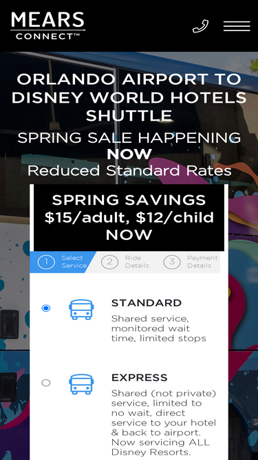 96%mears connect is a 24/7, affordable orlando airport shuttle transportation service to disney world, disney springs and area resorts. book now!