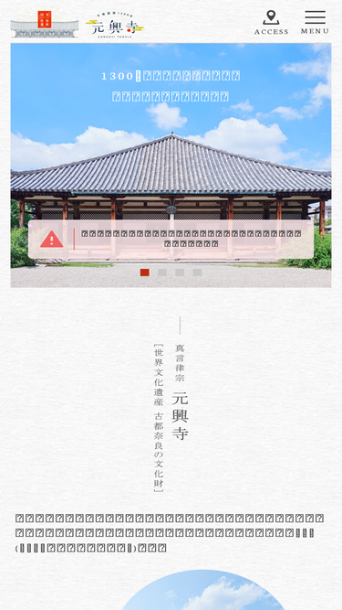 87%元興寺の公式ウェブサイトです。1300年の歴史を持つ奈良の国宝・世界文化遺産である元興寺は、南都七大寺のひとつに数えられる寺院です。日本最初の本格的伽藍である法興寺(飛鳥寺)が平城遷都にともなって、新築移転されたのが始まりです。