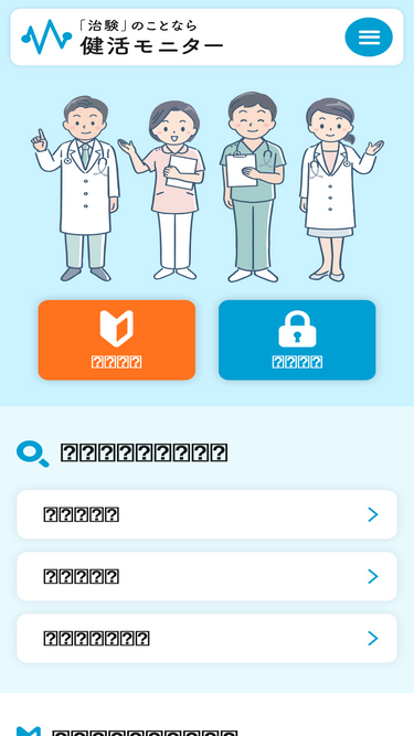 95%健活モニターに関して不明な点や掲載中の治験について問い合わせ可能なページです。