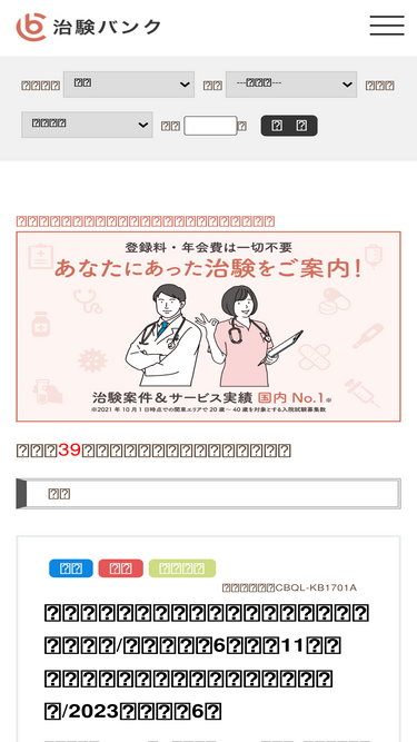 93%高額治験のバイト募集情報なら紹介実績豊富な治験バンクにお任せください。登録・利用は完全無料で24時間メール対応。治験バイト募集だけでなく、健康食品・特定保健用食品・コスメのモニター情報等も多数掲載しています。