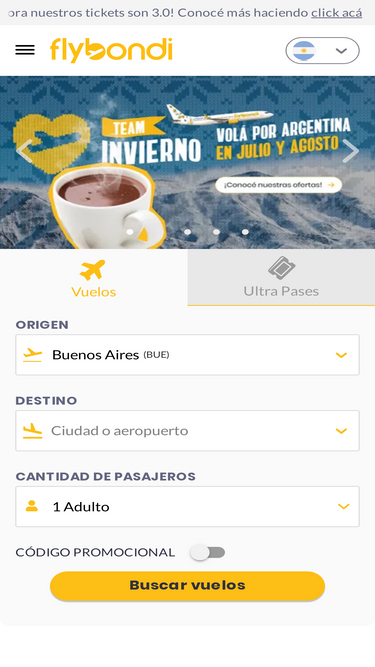 74%la primera aerolínea low cost de argentina. recorre nuestros destinos con el mejor precio. la libertad de volar. vuelos baratos.