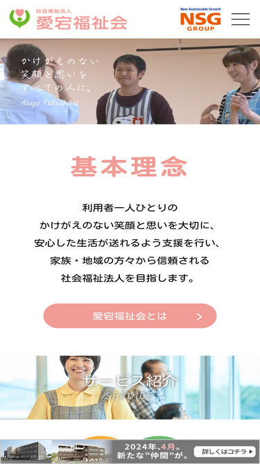 100%社会福祉法人愛宕福祉会は、 3つの大きな実現に向けて様々な福祉サービスの提供を行っています。