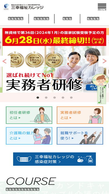 91%介護職員初任者・実務者の研修・資格の学校なら三幸福祉カレッジ。通学+通信を組み合わせたカリキュラムは、働いている方にも学びやすい最短1ヶ月で資格取得できるカリキュラムです。