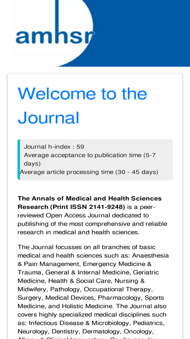 100%Explore cutting-edge studies in medicine, public health, and clinical science with the Annals of Medical and Health Sciences Research for global scientific advancement.