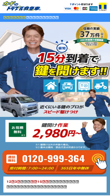 93%鍵が開かない、鍵が壊れた、古い鍵を交換したい・・鍵で困ったときの出張鍵屋さんです。玄関の鍵や車・バイクの鍵開け、金庫のダイヤル開錠など、一番近くの鍵のプロスタッフが急行します。ピッキングだけでなくクレセント開錠やドアスコープ開錠、車のインロックやイモビライザーキーの複製、ドアクローザー調整交換などご相談ください