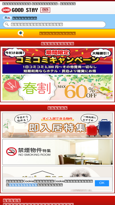 82%ウィークリーマンション・マンスリーマンションのグッドステイ!24時間メール問合せ受付無料で、即日入居可物件・キャンペーン割引物件多数。お気軽にお問合せください!
