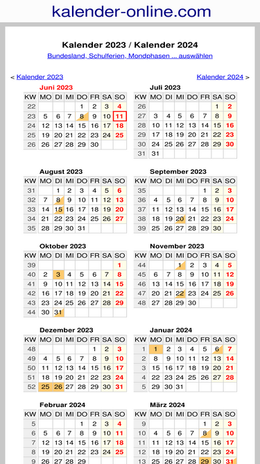 85%Online-Kalender 2026/2027 mit Feiertagen, Kalenderwochen, Schulferien. Immer aktueller Online-Kalender - auch kostenlos zum Ausdrucken.