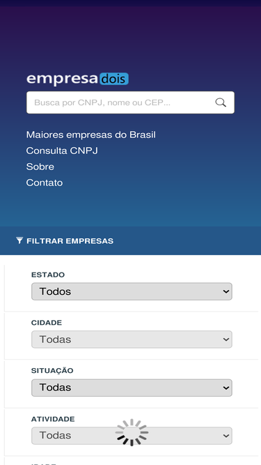 consulte informações sobre cnpj de milhões de empresas brasileiras. encontre telefones, endereços, e-mails, sócios, filiais, situação cadastral e muito mais...