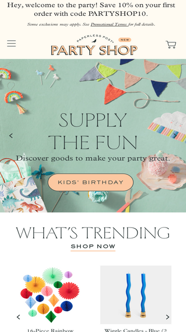 92%Welcome to Paperless Post Party Shop, a conveniently curated collection of unique party accents, décor, and more to match the designer online invitations you love.