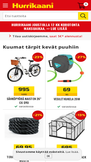 95%Laatutuotteita edullisesti joka lähtöön: pihaan ja puutarhaan, kotiin ja mökille, korjaajille ja rakentajille - juhlaan ja arkeen. Tarkista tarjouksemme!