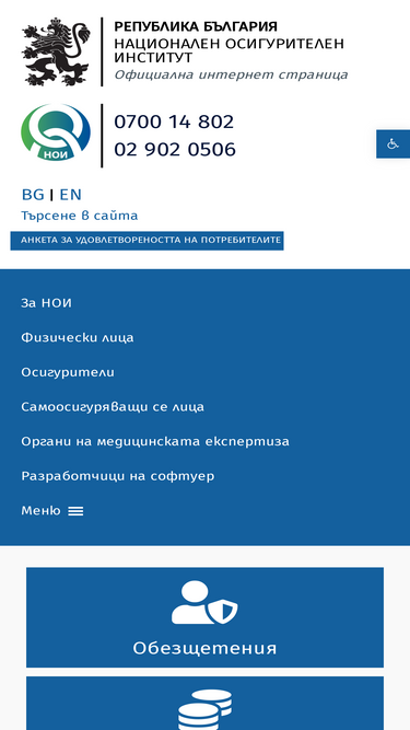 85%Национален осигурителен институт, бул. „Александър Стамболийски“ 62-64, София, България; Контактен център на НОИ - 0 700 14 802; Електронна поща: noi@nssi.bg.