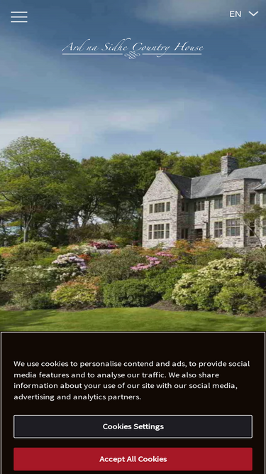 60%Ard Na Sidhe country house hotel is one of best 4 star luxury hotels on the Ring of Kerry. An intimate stay awaits you at this enchanting country manor house.