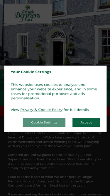 60%Welcome to the official site of Dingle Benners Hotel ideally located in Dingle Town Centre offering luxury accommodation at great rates. Book your stay now.