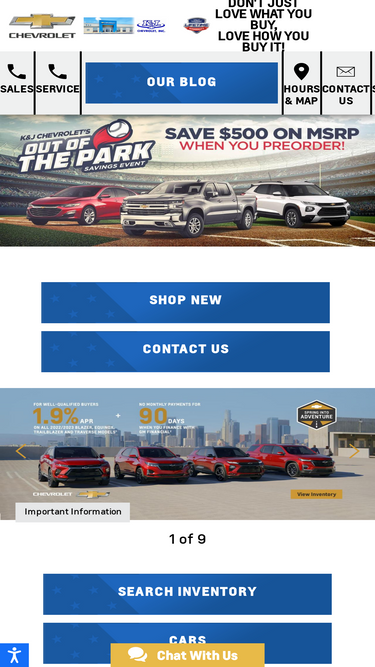 99%visit k&j chevrolet, a chevy dealership in carlyle, il, for an impressive inventory of new and used chevy models, expert service and superior customer service.