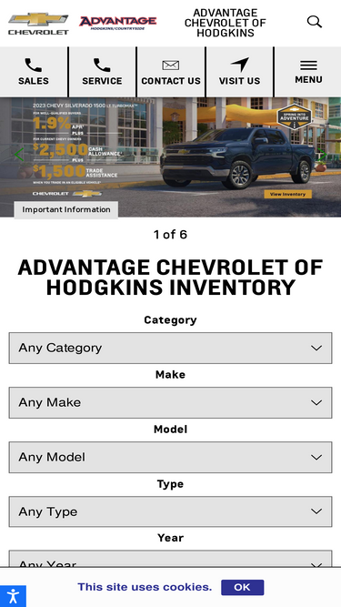 99%Discover a wide selection of new and used Chevrolet vehicles at Advantage Chevrolet of Hodgkins. Visit us in Hodgkins, IL for top-quality cars, trucks, SUVs, and expert service. Find your perfect ride today!