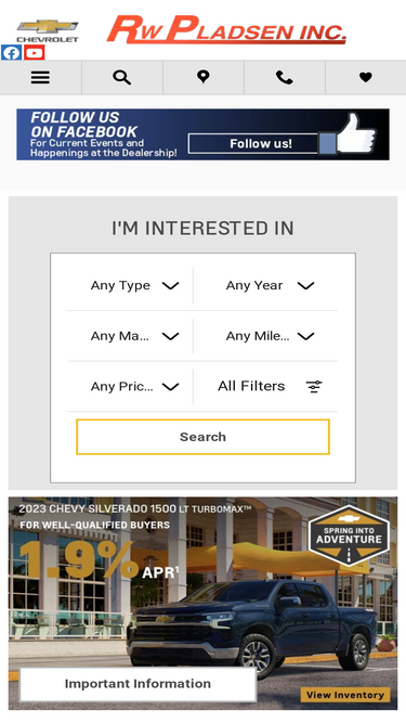 search r. w. pladsen, inc.'s online chevrolet dealership and browse our comprehensive selection of new cars, trucks and suvs. buy a new or used chevrolet in waukon ia serving decorah, new hampton ia and la crosse wi.