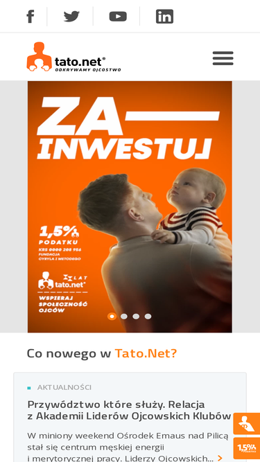 71%Tato.Net to wiodąca w Europie inicjatywa inspirująca mężczyzn do przeżywania ojcostwa jako pasji oraz najważniejszej kariery życia. Misją Tato.Net jest pomagać w kształtowaniu postawy świadomego i odpowiedzialnego ojcostwa wśród współczesnych mężczyzn.