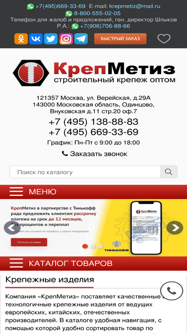 80%Крепеж и метизы по оптовым и розничным ценам с доставкой в Москве. ☑️ Большой выбор, сертификаты качества, калькулятор веса, прайс-лист. Онлайн-заказ и поддержка по телефону 8 499 350-55-55.